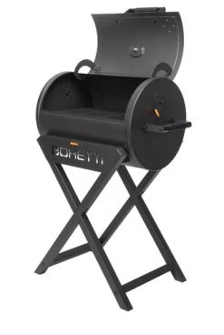 Je haalt een complete barbecue inclusief onderstel en zijtafels in huis.