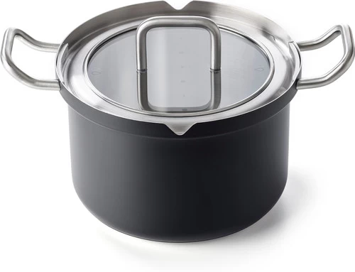 Dankzij de handige literaanduiding meet je vloeistoffen direct in de pannen af.