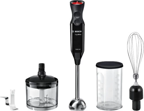 Bij de Bosch ErgoMixx MS61B6170 zit een ballongarde, zodat je gemakkelijk slagroom en eiwitten opklopt. In de hakmolen hak je ingrediënten fijn, zoals noten of ui. Dankzij het krachtige vermogen gebruik je de staafmixer voor meerdere bereidingen achter elkaar. Hak bijvoorbeeld eerst alle ingrediënten fijn in de hakmolen en mix ze na het koken tot een egale soep. Met de 12 standen stel je de snelheid nauwkeurig in. Zet ‘m bijvoorbeeld hoog wanneer je soep pureert en laag als je een wat grovere bereiding maakt, zoals pesto.