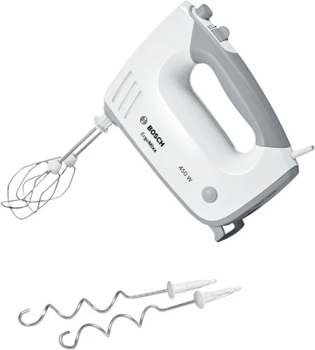 Ben je op zoek naar een eenvoudige handmixer? De Bosch MFQ36400 heeft twee gardes en twee kneedhaken. Met vijf standen en een turbofunctie roer, klop of kneed je veel verschillende ingrediënten. Met 450 watt vermogen heeft de handmixer genoeg kracht, maar spat niet direct alles uit je kom. Na gebruik berg je het snoer gemakkelijk op in het apparaat en neemt de handmixer dus niet veel ruimte in beslag.