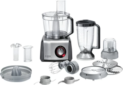 Met de Bosch MultiTalent 8 MC812M844 hak je gemakkelijk een uitje fijn in de meegeleverde hakmolen. Dankzij het hoge vermogen van 1250 watt hakt, snijdt en raspt de foodprocessor niet alleen. Je kneedt er ook met gemak brood- of pizzadeeg mee. Met de klopgardes klop je eiwitten op of maak je verse slagroom. Het meegeleverde blenderopzetstuk gebruik je om een lekkere smoothie mee te maken. Meer zin in een heldere sap? Ga dan aan de slag met het citruspersopzetstuk en maak een verse jus d’orange. Na gebruik reinig je alle losse onderdelen in de vaatwasser.