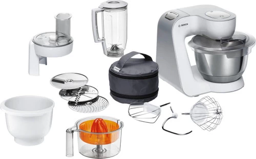 Met de Bosch MUM58243 maak je ook verse sapjes, smoothies en snijd of rasp je ingrediënten fijn met de extra opzetstukken. Handig, want zo is de mixer ruim inzetbaar en heb je maar één apparaat nodig. Met het vermogen van 1000 watt is deze mixer geschikt voor het kneden van zwaar deeg. Zo maak je bijvoorbeeld je eigen pizzadeeg. Gebruik dan ook gelijk de foodprocessor om de groenten voor op de pizza te snijden. Zo neemt de keukenmixer al het werk uit handen. Je maakt beslag voor één taart in de 3,9 liter mengkom. Wil je meerdere taarten tegelijk maken of maak je een stapeltaart? Gebruik dan de extra mengkom, scheelt weer tussendoor afwassen.