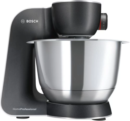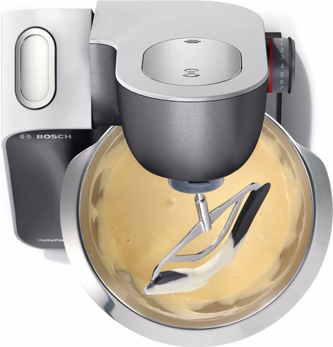 Met de Bosch MUM59M55 maak je niet alleen beslag of deeg, dankzij de opzetstukken doe je er veel meer mee. Zo maak je jouw eigen gehakt in de vleesmolen en hak je ingrediënten fijn in de hakmolen. Je snijd en rasp je groenten in de foodprocessor en maakt verse sap in de citruspers die je vervolgens gemakkelijk meeneemt in de to go beker. Dankzij de handige antispatdeksel vliegen er geen spetters uit de kom en blijft je keuken schoon. Het hoge vermogen van 1.000 watt zorgt er voor dat je gemakkelijk zwaar deeg kneedt voor bijvoorbeeld een brood of pizzabodem. In de 3,9 liter mengkom maak je beslag voor één taart.