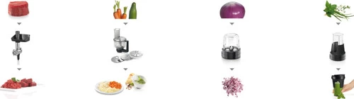 Met de extra accessoires maak je ook smoothies, sinaasappelsap, gehakt en snijd of rasp je ingrediënten fijn.