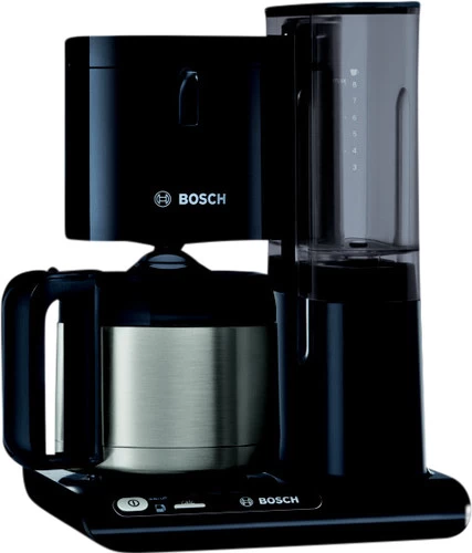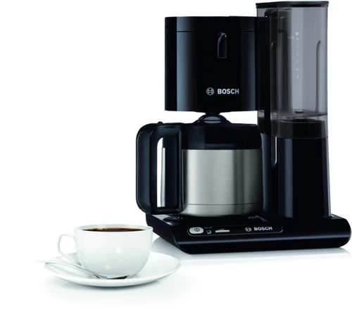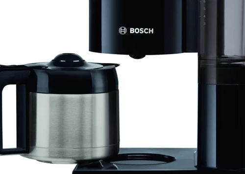 De Bosch Styline TKA8A053 Zwart past automatisch de zettijd aan van het aantal kopjes koffie op basis van de hoeveelheid water in het reservoir. Op deze manier optimaliseert het koffiezetapparaat het extractieproces. Zo smaakt de koffie elke keer weer goed, of dit nu 3 of 8 kopjes per keer zijn. Het krachtige verwarmingssysteem zorgt voor een vol aroma. De machine verwarmt het kokende water tot de optimale temperatuur van 92 tot 96 graden. Nadat de koffie is gezet, houdt de dubbelwandig rvs thermoskan de koffie voor een lange tijd warm. Ook schakelt de machine zichzelf automatisch uit energie te besparen. Het geïntegreerde ontkalkingssysteem waarschuwt je wanneer er te veel kalk in de leidingen zit. Om dit te verhelpen, zet je eenvoudig het ontkalkingsprogramma aan.