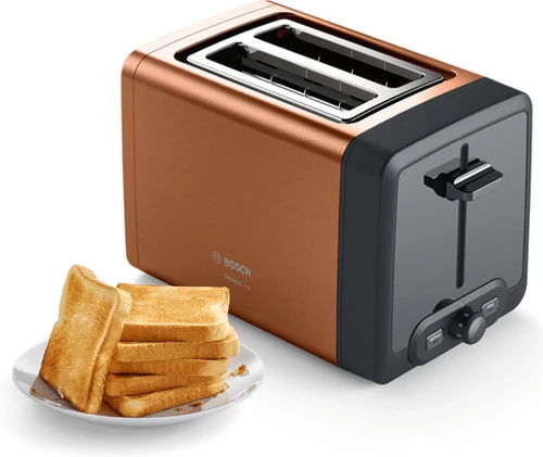 In de Bosch TAT4P429 Koper rooster je gelijktijdig 2 boterhammen. Met de 6 standen bepaal je zelf hoe krokant je jouw brood roostert. Wil je het brood alleen ontdooien of warm houden? Dan kies je voor de ontdooi- of warmhoudstand. De buitenkant van de broodrooster warmt dankzij de koele wand niet op. Je verplaatst hem dus veilig zonder dat je jouw vingers brandt. Kruimels komen door de kruimellade niet op je aanrecht of tafel terecht. Dit scheelt weer een rondje met de kruimeldief. Na gebruik berg je de stekker netjes aan de achterkant van het broodrooster op.