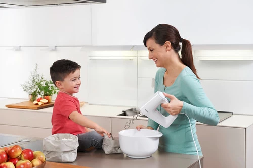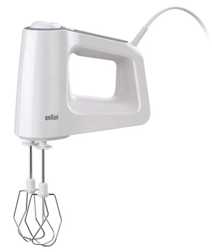 Met de Braun MultiMix 3 HM3100WH Wit handmixer maak je het jezelf gemakkelijk bij het bereiden van verschillende soorten beslag. Door de verticaal geplaatste motor ligt het gewicht van de mixer namelijk niet in je hand, maar in de kom. En met de deeghaken kneed je pizza- of taartdeeg. De gardes helpen je bij het luchtig kloppen van slagroom en eiwitten. Met de 5 snelheden en de turbofunctie houd je optimale controle over het mixproces. De Braun MultiMix 3 HM3100 handmixer heeft een comfortabel en stabiel soft grip handvat. Wel zo veilig als je natte of vette handen hebt.