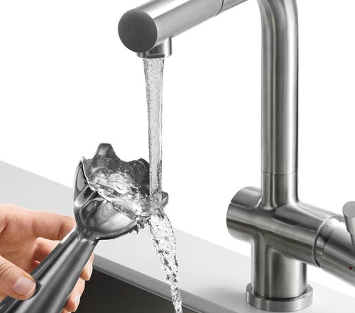 Je gebruikt deze staafmixer kort voor harde ingrediënten en langer achter elkaar voor zachte ingrediënten.