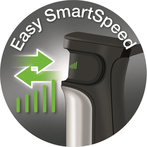 Je hebt veel controle over de snelheid van de staafmixer, doordat ‘ie traploos instelbaar is.