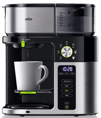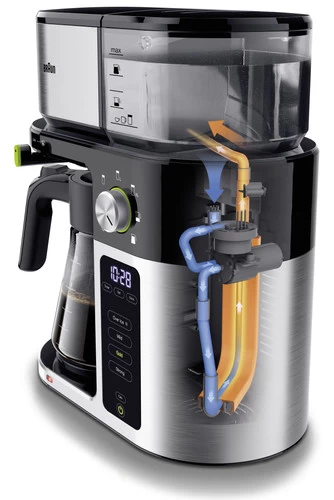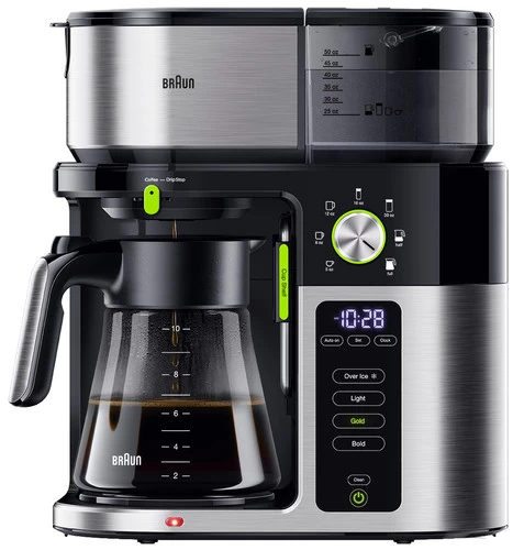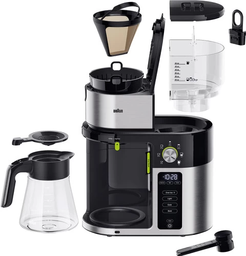 Met de Braun MultiServe KF9050BK haal je een luxe filterapparaat in huis. Zo zet je niet alleen een pot koffie, maar vul je ook jouw thermosbeker of zet je een kopje koffie voor jezelf. Je stelt de koffiesterkte in met de Light, Gold en Bold knopjes óf je kiest voor een ijskoffie met de Over Ice functie. Lekker voor op een warme zomerdag. Met de timer stel je in dat er ’s ochtends een kopje koffie voor je klaar staat. Zo komt de koffiegeur je al tegemoet terwijl jij nog in bed ligt. Het waterreservoir is afneembaar, zodat je ‘m gemakkelijk vult. Dankzij de kopsaanduiding meet je de hoeveelheid water eenvoudig af voor het aantal kopjes dat je wil zetten.