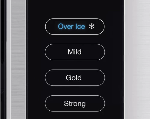 Dankzij de over ice functie maak je ook ijskoffie met deze machine.
