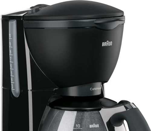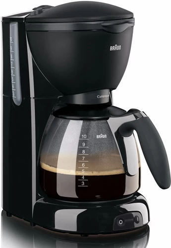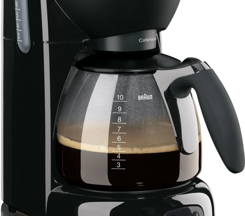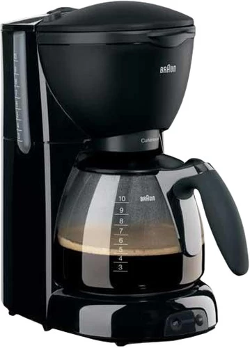 Met de Braun PurAroma Plus KF560/1 Zwart zet je een aromarijke filterkoffie. De doorlooptijd en watertemperatuur zijn namelijk zeer precies op elkaar afgestemd voor een volle koffiesmaak. Het Brita waterfiltersysteem voorkomt dat er kalkaanslag ontstaat in het koffieapparaat. Zo gaat niet alleen het apparaat langer mee, maar ook de koffiesmaak blijft zo goed. Met het waterreservoir met kopaanduiding bepaal je gemakkelijk voor hoeveel personen je koffie zet. Je hoeft niet bang te zijn voor onnodige energieverspilling, want de machine schakelt na 40 minuten automatisch uit.