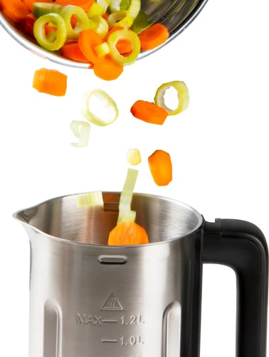 Je maakt van rauwe ingrediënten een warme saus of soep, dankzij de kookfunctie.