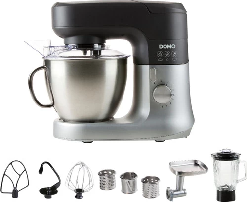 De krachtige DOMO DO9182KR Zwart gebruik je dankzij het hoge vermogen ook voor het kneden van zwaarder deeg zoals brooddeeg en pizzadeeg. Dankzij het uitgebreide accessoirepakket is deze keukenmixer een echte alleskunner. Gebruik de vleesmolen voor het maken van worstjes of gehakt. Zo hoef je voortaan niet meer naar de slager. Met het blender opzetstuk maak je verse smoothies en sauzen. In de ruime roestvrijstalen mengkom mix je deeg en beslag voor alle soorten baksels. Klik de klopper in de keukenmixer en maak in een handomdraai heerlijk romige botercrème voor tussen de cakelagen van een taart. Zelfs voor het maken van een frisse salade komt deze keukenmixer van pas. Met de groentesnijder snijd je gemakkelijk wortel en komkommer in dunne reepjes.