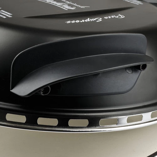 Dankzij de grote kunststof handgrepen open je veilig de pizzaoven, zonder je vingers te verbranden.