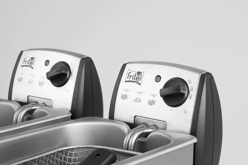 Met de Fritel FR 1355 Duo 2 x 3L frituur je gemakkelijk voor grote groepen. De roestvrij stalen friteuse is voorzien van twee bakken met een inhoud van 3 liter die afzonderlijk van elkaar in te schakelen zijn. Door de totale inhoud van 6 liter is het mogelijk om 8 tot 10 personen tegelijk van een portie frietjes te voorzien. Je gebruikt de twee bakken natuurlijk ook om twee verschillende snacks te bakken. Hoeveel gasten er ook op bezoek komen, deze friteuse frituurt snel zodat je genoeg tijd overhoudt voor andere dingen. Na gebruik haal je losse onderdelen gemakkelijk uit elkaar en reinig je ze in de vaatwasser.