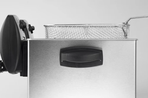 In deze friteuse bereid je voor 6 personen of meer tegelijk frietjes.