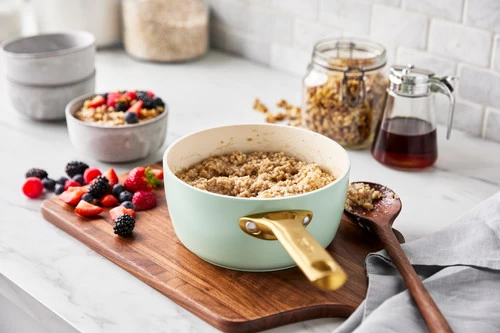 De pannen zijn geschikt voor alle warmtebronnen, inclusief inductie en gebruik in de oven tot aan 220 graden Celsius.