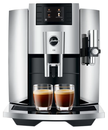 De JURA E8 Chroom (EB) heeft veel verschillende koffiespecialiteiten. Zo kies je uit 13 voorgeprogrammeerde koffies, van een flat white, cortado tot een lungo barista. Houd je van sterke koffies? Voeg dan een extra shot espresso toe. Nadat je koffie zet, onthoudt de machine jouw recept. De koffiemachine heeft een dubbele koffie uitloop. De uitloop in het midden van de machine is alleen voor zwarte koffies. De uitloop aan de rechterkant is voor melkspecialiteiten. Zo houd je de koffiespecialiteiten gemakkelijk van elkaar gescheiden. Je bedient het apparaat via het kleurendisplay met 6 toetsen. Wanneer je koffie zet, maalt de Professional Aroma Grinder de koffiebonen op de juiste manier fijn. Zo komen alle koffiearoma’s het beste naar voren.