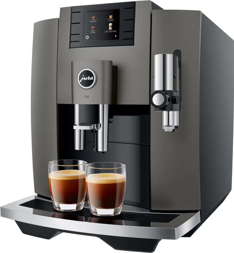 De JURA E8 Dark Inox (EB) heeft veel verschillende koffiespecialiteiten. Zo kies je uit 13 voorgeprogrammeerde koffies, van een flat white, cortado tot een lungo barista. Houd je van sterke koffies? Voeg dan een extra shot espresso toe. Nadat je koffie zet, onthoudt de machine jouw recept. De koffiemachine heeft een dubbele koffie uitloop. De uitloop in het midden van de machine is alleen voor zwarte koffies. De uitloop aan de rechterkant is voor melkspecialiteiten. Zo houd je de koffiespecialiteiten gemakkelijk van elkaar gescheiden. Je bedient het apparaat via het kleurendisplay met 6 toetsen. Wanneer je koffie zet, maalt de Professional Aroma Grinder de koffiebonen op de juiste manier fijn. Zo komen alle koffiearoma’s het beste naar voren.