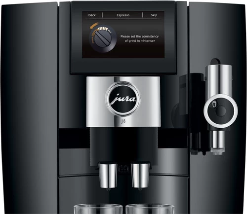 Met de JURA J8 Piano Black (EA) maak je jouw favoriete drankje uit de koffiebar zelf thuis. Zo mengt de Sweet Foam functie een siroop door het melkschuim heen en krijg je met één druk op de knop een zoete latte macchiato. Je kiest uit 23 verschillende koffiespecialiteiten, 2 soorten melkschuim en 2 theesoorten. Het apparaat herkent welk kopje je onder de uitloop plaatst. Hierop past hij de selectie op het display aan voor de beschikbare specialiteiten. Dus bij een klein kopje krijg je allerlei espresso varianten te zien. Hierdoor is koffiezetten makkelijker dan ooit. Je bent verzekerd van een goede koffie kwaliteit. Zo bewaakt de koffiemolen de maalgraad, wat zorgt voor een gelijkmatig eindresultaat en maximale smaak van iedere koffie.