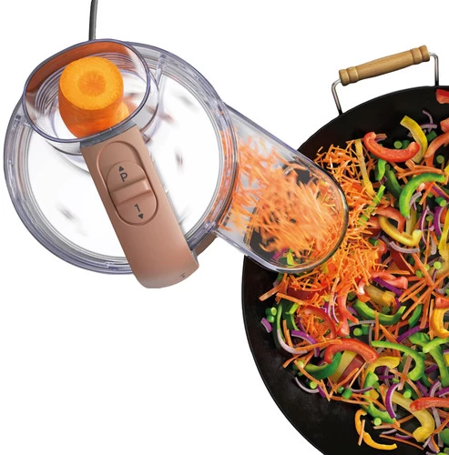 Met de Express Serve kom snijd en rasp je ingrediënten direct in een pan of op een bord.