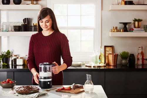 Met de meegeleverde klopper maak je eenvoudig slagroom of mayonaise.