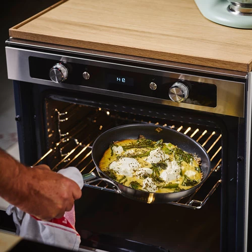 De bakpannen zijn geschikt voor alle warmtebronnen, inclusief inductie en gebruik in de oven tot aan 160 graden Celsius.