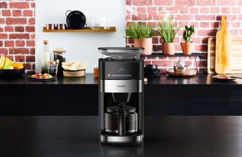 De Krups Grind en Brew KM8328 maalt jouw bonen en zet een verse aromavolle koffie. De koffiemolen levert gelijkmatige maalresultaten met een stille werking. Je maakt je koffiekeuze dankzij het eenvoudige en intuïtieve bedieningspaneel met led display. Het koffiezetapparaat is geschikt voor 10 tot 15 kopjes koffie in één keer. Om het opstaan `s ochtends een beetje beter te maken, stel je met de handige timer de zetcyclus in. Hierdoor staat jouw koffie klaar wanneer je maar wilt. Plaats jouw lievelings bonen in de molen en kies uit de 3 maalstanden. De Grind Aroma doet zijn werk. Zodra de koffie is gezet, houdt de machine de koffie voor 30 minuten lang warm waarna deze automatisch uitschakelt.