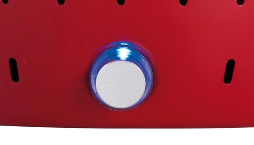 Je controleert zelf de temperatuur met de draaiknop aan de zijkant van de grill.