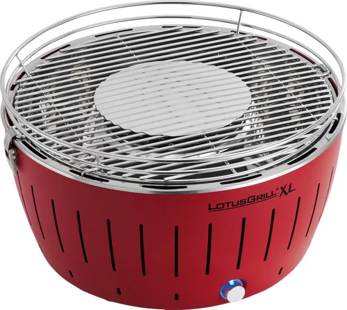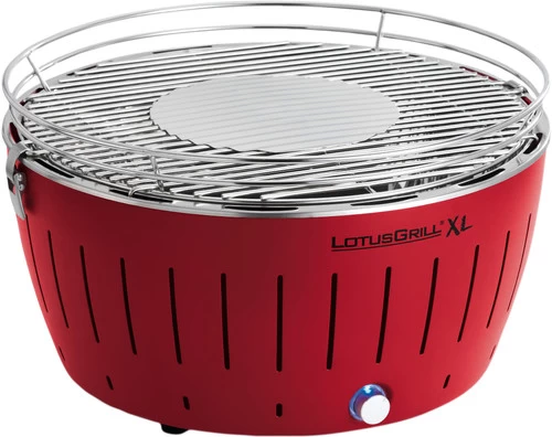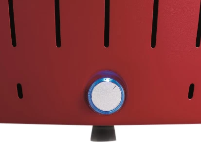 Je controleert zelf de temperatuur met de draaiknop aan de zijkant van de grill.