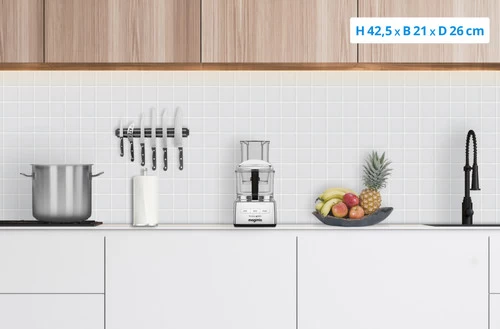De Magimix Cuisine Systeme 4200 XL heeft 3 mengkommen met een inhoud tot 3 liter. Hierdoor maak je er grote hoeveelheden in 1 keer mee. Hakken, snijden, raspen en mixen; hij doet het allemaal stil, snel en veilig. Nadenken over de snelheid? Niet doen, want dat doet deze slimme keukenhulp voor je. De snelheid past zich automatisch aan de bereiding aan. Berg na de bereiding de accessoires op in de opbergdoos, zodat je geen ruimte hoeft te maken in je keukenlade. Magimix geeft 30 jaar garantie op de motor.