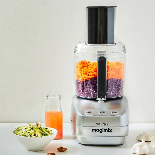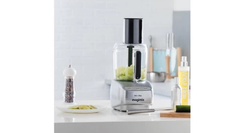 De Magimix Le Mini Plus Mat Chroom foodprocessor is klein, maar fijn. Hij is geschikt voor in keukens met weinig ruimte, maar het grote werk kan hij dankzij de krachtige inductie motor gemakkelijk aan. Is de 1,7 liter mengkom voor sommige bereidingen te groot? Gebruik dan de 0,5 liter kom. Le Mini past de snelheid automatisch aan het soort bereiding aan. Zo hoef jij niet te zoeken naar de juiste stand voor deeg kneden, soepen mixen, vlees of harde groenten hakken. Berg de accessoires op in de bewaardoos, zodat je geen ruimte hoeft te maken in je keukenlade. Magimix geeft 30 jaar garantie op de motor.