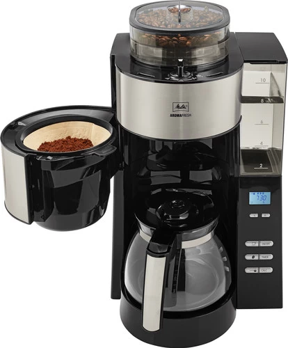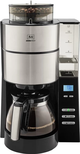 De Melitta Aromafresh 1021-01 beschikt over een ingebouwde molen met instelbare maalgraad. Maak een verse kop filterkoffie en stel de maalgraad zelf in van fijn tot grof. Om je koffie nog meer naar eigen smaak te maken, kies je tussen verschillende koffiesterktes als mild, medium en sterk. Met de timerfunctie met LCD-display zet je koffie op het door jou uitgekozen tijdstip. Je vult het transparante waterreservoir met waterpeilaanduiding gemakkelijk met de gewenste hoeveelheid water. Zodra de koffie is gezet, houdt het apparaat de koffie voor 20, 40 of 60 minuten op temperatuur. Het filterapparaat is voorzien van een 3-in-één bescherming tegen kalkaanslag om ervoor te zorgen dat `ie een lange tijd meegaat.