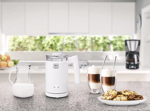 Melk opschuimen voor warme- en koude melkspecialiteiten doe je met de Melitta Cremio II Wit. Zo maak jij zowel in de winter als in de zomer jouw favoriete kop koffie. Behalve het opschuimen van melk, is het ook mogelijk om de melk enkel te verwarmen. Zo maak je een koffie verkeerd, of een kopje warme melk met honing. Zodra het rode lampje brandt betekent dit dat de opschuimer klaar is voor het bereiden van warme dranken. Met het blauwe lampje zie je dat je koud melkschuim maakt. Je reinigt de klopper en het deksel na gebruik gemakkelijk in de vaatwasmachine.