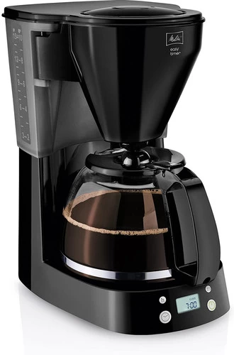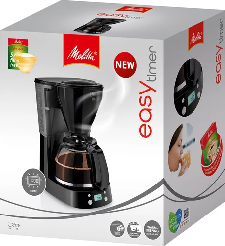Met de Melitta Easy Timer Zwart zorg jij ervoor dat er iedere ochtend een lekkere pot met koffie klaar staat. Stel gemakkelijk de timer in, zodat jij zeker weet dat je dag goed begint. Staat jouw partner, vader of vriendin net wat later op dan jij? Dan zorgt de warmhoudstand ervoor dat de koffie 30 minuten lang op temperatuur blijft. Je zet maximaal 10 kopjes koffie in één keer, genoeg voor het hele gezin. De druppelstop zorgt ervoor dat de koffie niet na blijft druppelen wanneer je de kan onder het koffieapparaat vandaan haalt.