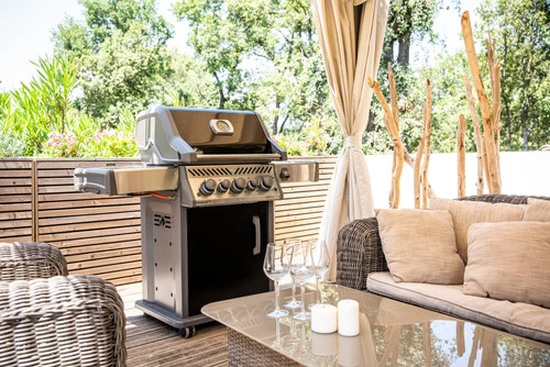 Bij een barbecue feestje voor 12 personen mag de Napoleon Rogue SE 425 RSIB niet ontbreken. Deze buitenkeuken werkt op gas en beschikt over 3 hoofdbranders, een infrarood zijbrander met speciale Sizzle Zone en een infrarood achterbrander. Dankzij de Jetfire ontsteking zet je elke brander veilig en snel aan. De zijbrander met Sizzle Zone zorgt ervoor dat je een stuk vlees of vis op hoge temperatuur dichtschroeit. Met de achterbrander gril je vlees aan het meegeleverde braadspit gelijkmatig gaar. Ook grillen in het donker is geen probleem. Dankzij de verlichte knoppen zie je precies welke branders aanstaan.