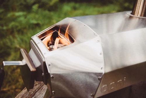 Je verwarmt de pizzaoven met houtskool of houtblokken.