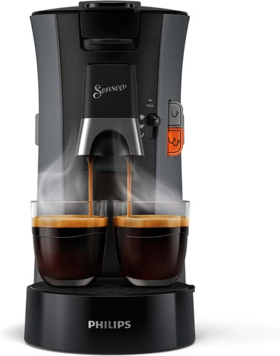 Met de Philips Senseo Select CSA230/50 Grijs geniet je van 3 koffiespecialiteiten, dankzij de Intensity Plus functie. Je schakelt met de schuifregelaar van een milde koffie, naar een intense koffie of een rijke espresso. De verschuifbare metalen koffie uitloop pas je aan naar de hoogte van je favoriete koffiemok. Het koffiezetapparaat is minder belastend voor het milieu. Zo bestaat hij uit gerecyclede onderdelen en is hij energiebesparend. Wanneer de machine is opgewarmd, begint hij direct met koffiezetten. Hij schakelt zichzelf automatisch uit zodat hij energie bespaart. Op elk kopje koffie vind je een smeuïge cremalaag, dankzij de Crema Plus Technologie. Is jouw Senseo toe aan een ontkalkingsbeurt? Dan geeft de ontkalkingsindicator jou een seintje.