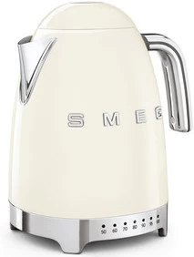 De SMEG KLF04CREU Creme heeft 7 temperatuurstanden waarmee je water verwarmt tussen de 50 en 100 graden Celsius. Met deze standen zet je warm water voor verschillende soorten thee zoals zwarte, groene en witte thee. De waterkoker houdt het water langer op temperatuur, dankzij de warmhoudfunctie. Met een inhoud van 1,7 liter zet je water voor zo’n 7 koppen thee in één keer. De indicator van deze waterkoker laat zowel het aantal liters als het aantal kopjes zien. Zo zie je snel of je genoeg water kookt voor jou en je gasten. De waterkoker kookt het water snel, zonder al te veel geluid. Met zijn opvallende retro uiterlijk en roestvrijstalen behuizing is de waterkoker een blikvanger in de keuken.