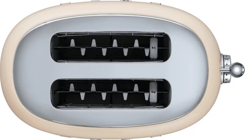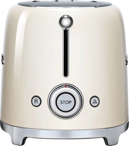 Met de SMEG TSF01CREU Creme broodrooster zijn je sneetjes brood in mum van tijd geroosterd. Het broodrooster heeft namelijk een hoog vermogen van 950 watt. Je kiest uit 6 verschillende standen. Zo maak je het brood zo krokant als jij wilt. Hij heeft 3 automatische programma’s waarmee je verwarmt, ontdooit of éénzijdig roostert. De laatste functie komt goed van pas wanneer je een bagel wilt maken. Het brood plaats je in de sleuven en duw je met de hendel omlaag. Wanneer de sneetjes krokant genoeg zijn, worden ze automatisch omhoog geduwd. Na gebruik maak je de kruimellade gemakkelijk schoon. De stekker berg je aan de achterkant netjes op.