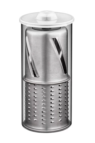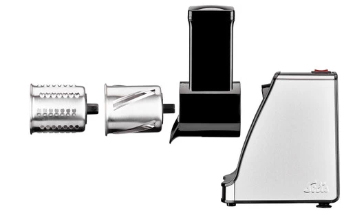 Met de Solis Slice & More Type 8401 rasp en snijd je ingrediënten in een mum van tijd fijn. Je kiest uit één van de 3 raspbladen om bijvoorbeeld kaas of chocolade fijn te raspen. Naast de raspbladen, zitten er 2 snijbladen bij om ingrediënten in plakjes te snijden. Zo snijd je komkommer of tomaat in plakjes voor op jouw broodje hamburger of maak je dunne plakjes aardappel om op te bakken. Na gebruik reinig je de losse onderdelen met de hand. Vervolgens berg je ze op in de meegeleverde houders. Handig, want zo blijven de bladen schoon en snijd je je niet per ongeluk aan een van de mesjes.