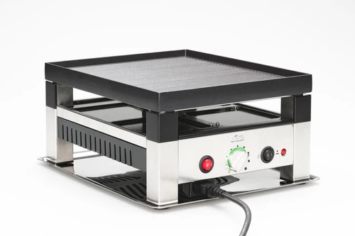 Met de Solis Tafelgrill 5-in-1 – 4 personen maak je verschillende bereidingen. Met de wokpannetjes creëer je kleine gerechtjes. In de vierkante raclettepannetjes maak je lekkere mini-pizza’s of kleine pannenkoeken. Gebruik je de pannetjes even niet, dan plaats je ze onder de warmteplaat. Ook beschikt het gourmetstel over een geribbelde grill- en bakplaat. Hierop grill je een biefstukje of bak je groenten en vis. Je stelt hierbij zelf de baktemperatuur in met de draaiknop. Zowel de plaat als de pannetjes zijn voorzien van een antiaanbaklaag. Hierdoor blijven de ingrediënten niet plakken en gebruik je minder boter of olie. Na gebruik reinig je de pannetjes en de uitneembare plaat gemakkelijk in de vaatwasser.