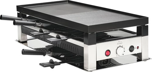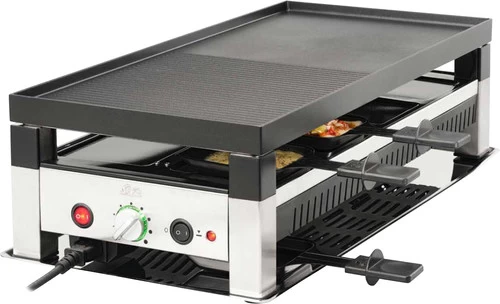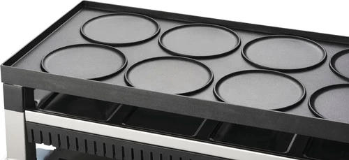 Met de Solis Tafelgrill 5-in-1 – 8 personen kies je uit 5 verschillende manieren van fun cooking. Zo gebruik je de raclettepannetjes op de warmteplaat om de ingrediënten te verhitten en plaats je ze onder de warmteplaat als je het pannetje even niet gebruikt. Op de grill- en bakplaat grill je een biefstukje terwijl je groenten en vis op de bakplaat bakt. Liever wokken? Draai de grill- en bakplaat dan om naar de kant waar je de wokpannetjes op zet. Zo bak je in een gourmetpannetje bijvoorbeeld een pannenkoek terwijl je ondertussen groente wokt in een wokpannetje. De platen en pannetjes beschikken allemaal over een antiaanbaklaag. Zo blijven ingrediënten niet plakken, gebruik je minder boter of olie én maak je alles gemakkelijker schoon.