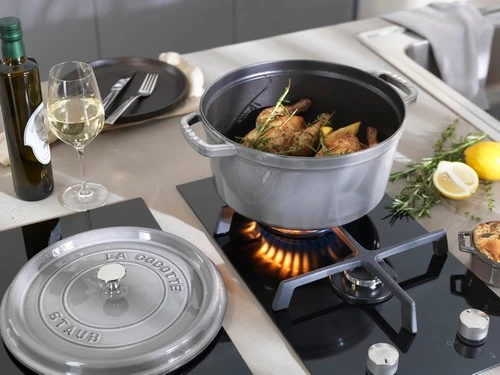 De braadpan is geschikt voor alle warmtebronnen, inclusief inductie en gebruik in de oven tot aan 240 graden Celsius.