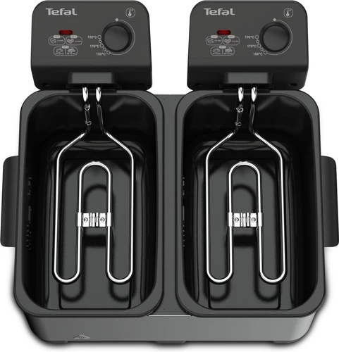Met de Tefal FR3610 Double Pro zet je een complete frituurmaaltijd op tafel, zonder dat de smaken mengen. Daarnaast gaat het ook nog eens extra snel; want de frietjes en snacks bereid je tegelijkertijd. Beide frituurpannen hebben een inhoud van één kilo. Groot genoeg om patat en snacks voor een groot gezelschap te bereiden. De frituurpannen zijn onafhankelijk te bedienen en stel je in op een temperatuur van maximaal 190°C. Kruimels komen terecht in de koude zone, hierdoor verbranden ze niet en komen er geen nare geurtjes de keuken in én blijft de olie langer vers. De losse onderdelen zijn vaatwasmachinebestendig, naar de afwas heb je dus geen omkijken.