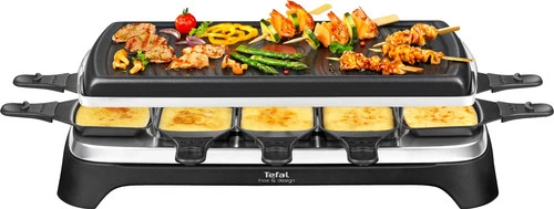 Met de Tefal Gourmet 10 Inox & Design RE4588 gourmet je tot 10 personen. Dankzij het hoge vermogen van 1.350 watt is het gourmetstel snel opgewarmd. De Tefal Thermo Signal-stip kleurt effen rood wanneer hij op temperatuur is. Handig, want zo weet je precies wanneer je de ingrediënten op de grillplaat legt. Verder gebruik je het gourmetstel tegelijkertijd ook als raclette. Zo smelt je in het pannetje een plakje kaas voor bijvoorbeeld je cheeseburger. Na gebruik was je de plaat met de hand af. Het netsnoer koppel je los van de grill, zodat je `m gemakkelijk opbergt in je keukenkastje.
