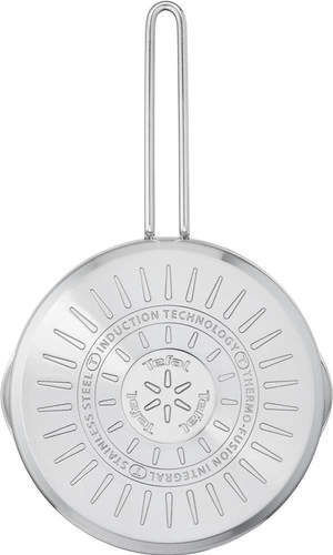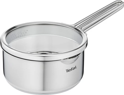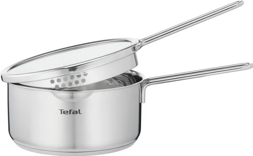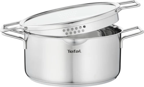 De Tefal Nordica Pannenset 3-delig biedt jou een basisuitrusting pannen aan, gemaakt van hoogwaardig geborsteld rvs met platte deksels. Deze Scandinavische pannenserie bestaat uit een steelpan met een diameter van 16 centimeter en 2 kookpannen van 20 en 24 centimeter. Het innovatieve design beschikt niet over een knop aan de bovenkant van de deksel. In plaats daarvan vind je 2 grepen aan de zijkant van de deksel. Dankzij deze grepen en de gaatjes in de zijkant giet je gemakkelijk en veilig kookvocht af tijdens het koken. De platte deksel neemt weinig ruimte in beslag en geeft je veel controle tijdens het koken. De pannenset is geschikt voor alle warmtebronnen, inclusief inductie en je plaatst de pannen in de oven tot aan 210 graden Celsius.
