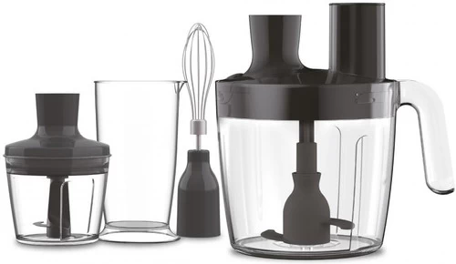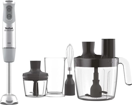 De Tefal Quickchef HB65LD is dankzij de meegeleverde opzetstukken een zeer veelzijdige staafmixer. In het hakmolenopzetstuk hak je noten of kruiden fijn. Met de garde klop je slagroom op. Uniek aan deze staafmixer is het foodprocessor opzetstuk met een ruime inhoud van 3 liter. Dit opzetstuk wordt geleverd met verschillende rasp- en snijschijven. Zo rasp je in een mum van tijd een stuk harde kaas fijn of snijd je een komkommer in dunne plakjes. Het vermogen van deze staafmixer is met 1000 watt hoog te noemen. Hierdoor is deze staafmixer geschikt voor het fijn malen van harde ingrediënten. Maar je gebruikt `m natuurlijk ook gewoon om een lekkere soep of een babyhapje mee te pureren.
