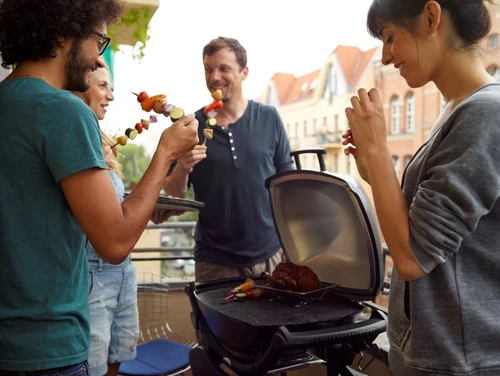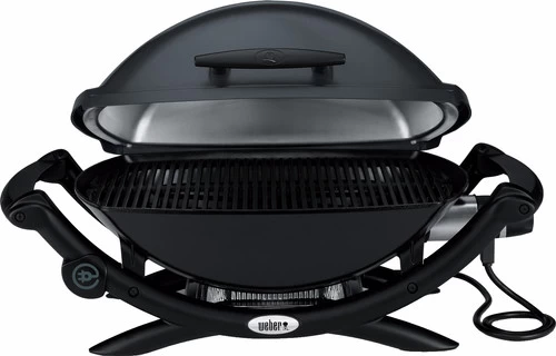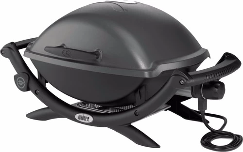Met de Weber Q2400 + hoes geniet je extra lang van je elektrische BBQ. Omdat deze barbecue op elektriciteit werkt, vormt er tijdens het barbecueën minder rook dan bij een houtskool barbecue. Bovendien hoef je geen gasflessen aan te schaffen, zoals bij een gasbarbecue, maar steek je het snoer met een lengte van 1,8 meter in het stopcontact en je gaat barbecueën. In vergelijking met de Q1400 heeft de Weber Q2400 een kookoppervlak dat ruim anderhalf keer zo groot is waardoor je barbecuet voor meer personen. Dankzij de aluminium reflector in de deksel bereikt de barbecue hoge temperaturen. De warmtespiraal zorgt ervoor dat je het vlees gelijkmatig gaart.